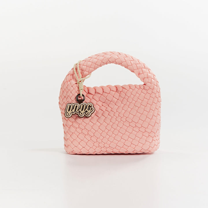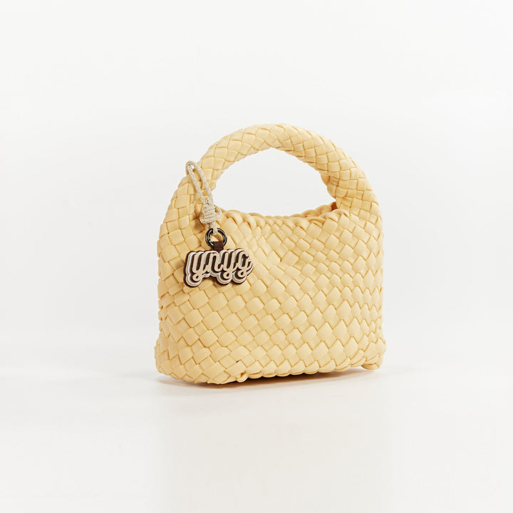 YNYG Calliope Woven Mini Tote Bag. With its classic proportions, the mini is ideal for traveling light, evenings out, or as a chic tote for any occasion. Despite its compact design, this mini Calliope comfortably holds all your essentials!