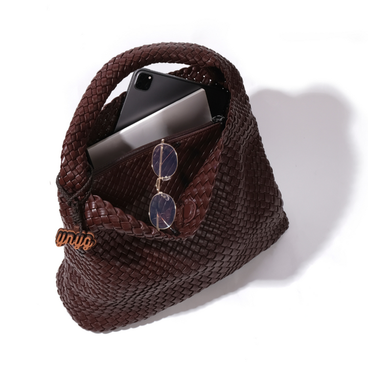Our Calliope Woven Leather Hobo is where luxury meets sustainability. Perfect Handmade Gift for Loved One. Crafted from high-quality, eco-friendly vegan leather, this tote is spacious enough to carry all your essentials and more, making it perfect for work, travel, or everyday adventures. With its sleek, modern design and durable construction, this bag combines style and function, proving that you don’t have to compromise on ethics to look chic. Discover a tote that’s as kind to the planet as it is beautiful! 🌱✨⬤