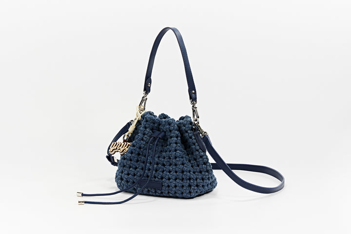 Hudson Windmill Knot Drawstring Mini Bucket / Crossbody - Denim